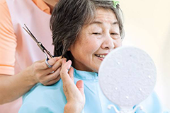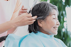 出張理美容専門のスタッフが病院や介護施設、ご自宅へ訪問して、美容室のサービスをお届けします。福祉の知識と技術を持った美容師・理容師がお伺いするので安心です。